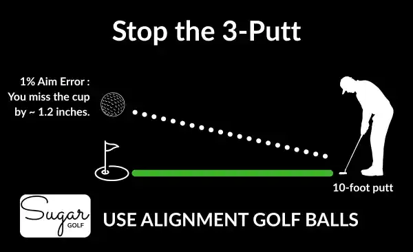 Sugar Golf Balls provide a linear reference that helps your brain square the putter face to the target line.